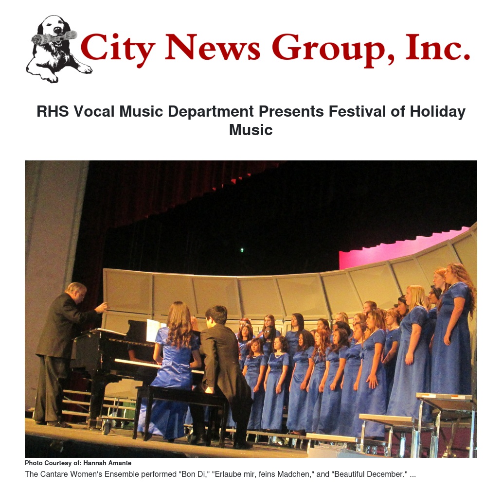 RHS Vocal Music Department Presents Festival of Holiday Music