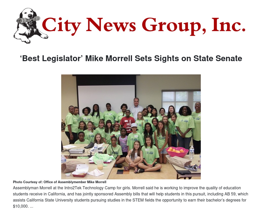 “Returning decision-making power to local districts, as we took steps to do this year, will help improve the mess created by Sacramento and Washington, D.C.,” Morrell said. He jointly sponsored Assembly Bill 51, which would offer California State University students studying STEM fields (science, technology, engineering and math) the opportunity to earn bachelor’s degrees for $10,000.“But at the same time, I believe our problems require a return to basic foundational principles,” Morrell said. “We must lay the groundwork for mastering effective writing and public speaking — all skills necessary for a well-rounded and prepared workforce. Most importantly, we must also become champions of parental involvement.”