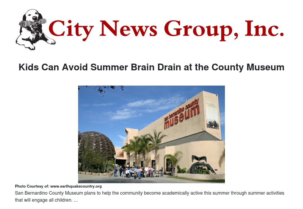 A series of informal programs at the San Bernardino County Museum will help kids “Avoid Summer Brain Drain” this July. Activities are included with paid museum admission. No reservations are required, and the whole family is invited.