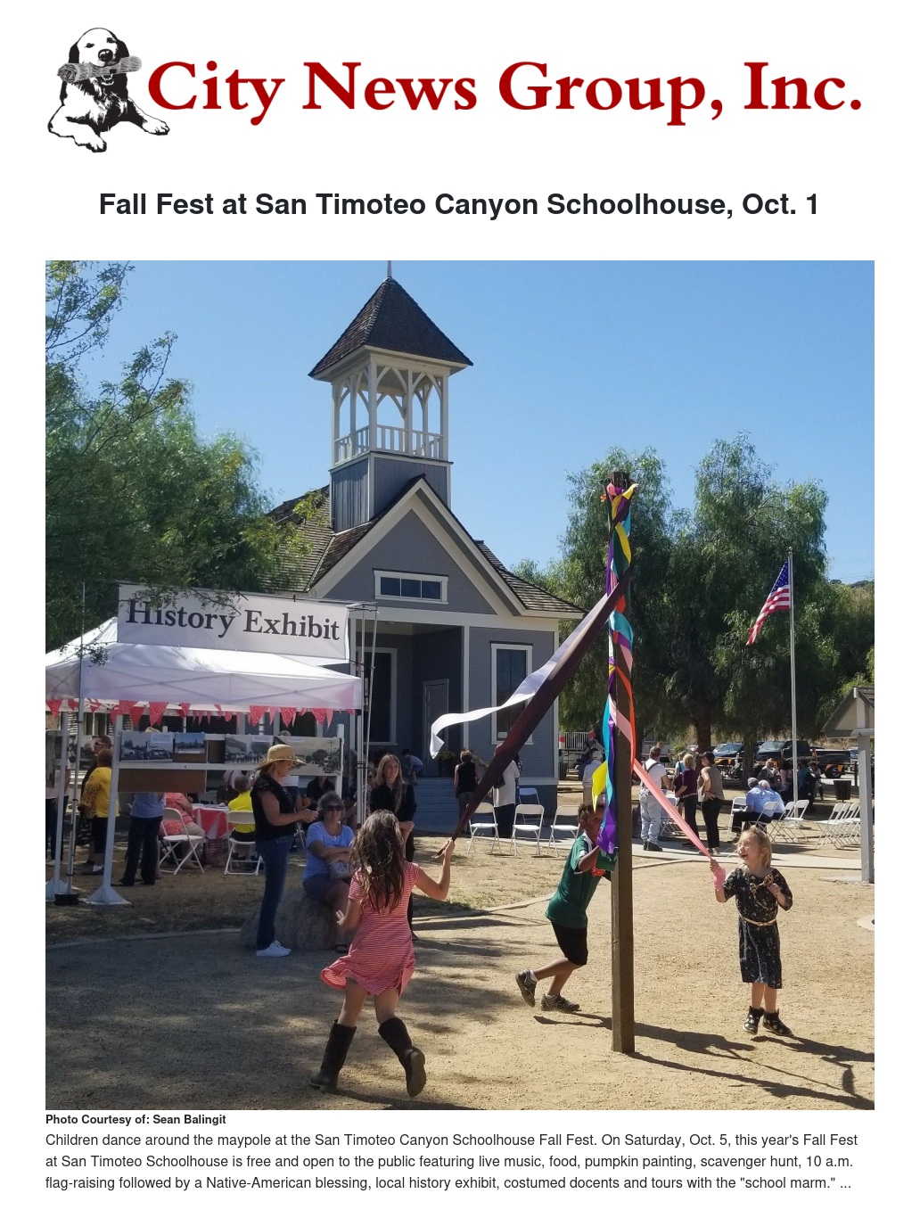 Heralding the season, Fall Fest at the historic San Timoteo Canyon Schoolhouse is Saturday, Oct. 1, from 10 a.m. to 2 p.m. The free event is open to the public and will feature a flag-raising ceremony, Native American blessing, crafts for kids, free snow cones and cotton candy, a May pole, food truck, and live music by Southern California’s Singing Cowboy Skeeter Mann.