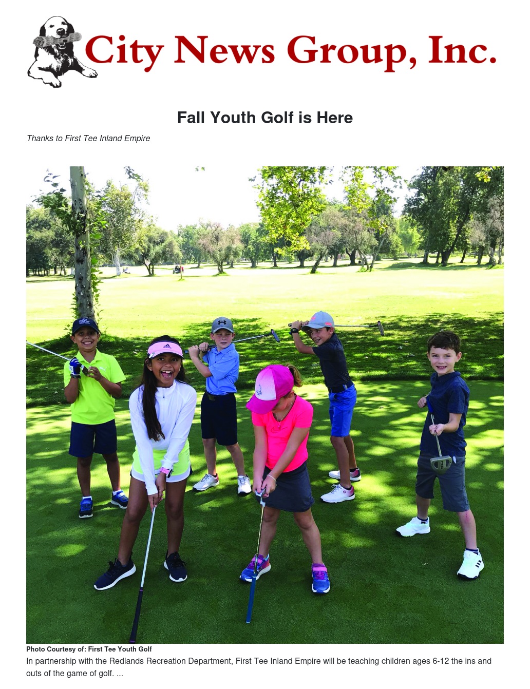 The City of Redlands Recreation Division offers First Tee Youth Golf for children ages 6-12, from 5-6 p.m. Mondays at Sylvan Park, 601 N. University St. Classes are taught by First Tee Inland Empire.
