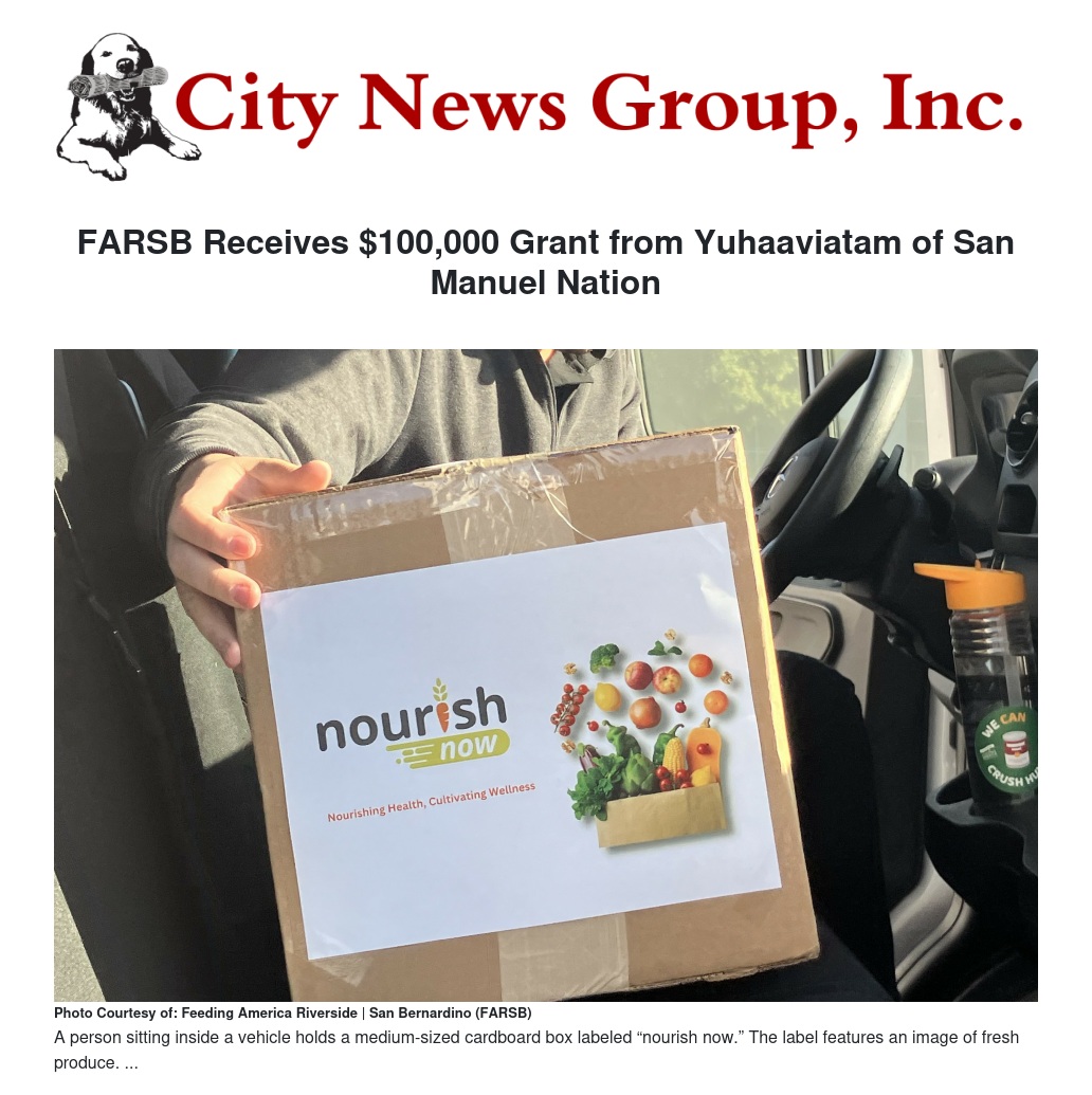 “We are deeply grateful to Yuhaaviatam of San Manuel Nation for their generous support and belief in our mission,” said Joanna Solorio, Interim CEO of FARSB. “This grant will allow us to support our homebound neighbors with emergency, supplemental food deliveries, creating lasting change for those who need it most.”