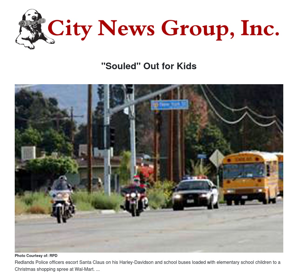 The Redlands Police Department provided motor escort for more than 80 elementary school children, along with members of two local churches during the annual “Souled Out for Kids” Christmas shopping spree Thursday, Dec. 4.