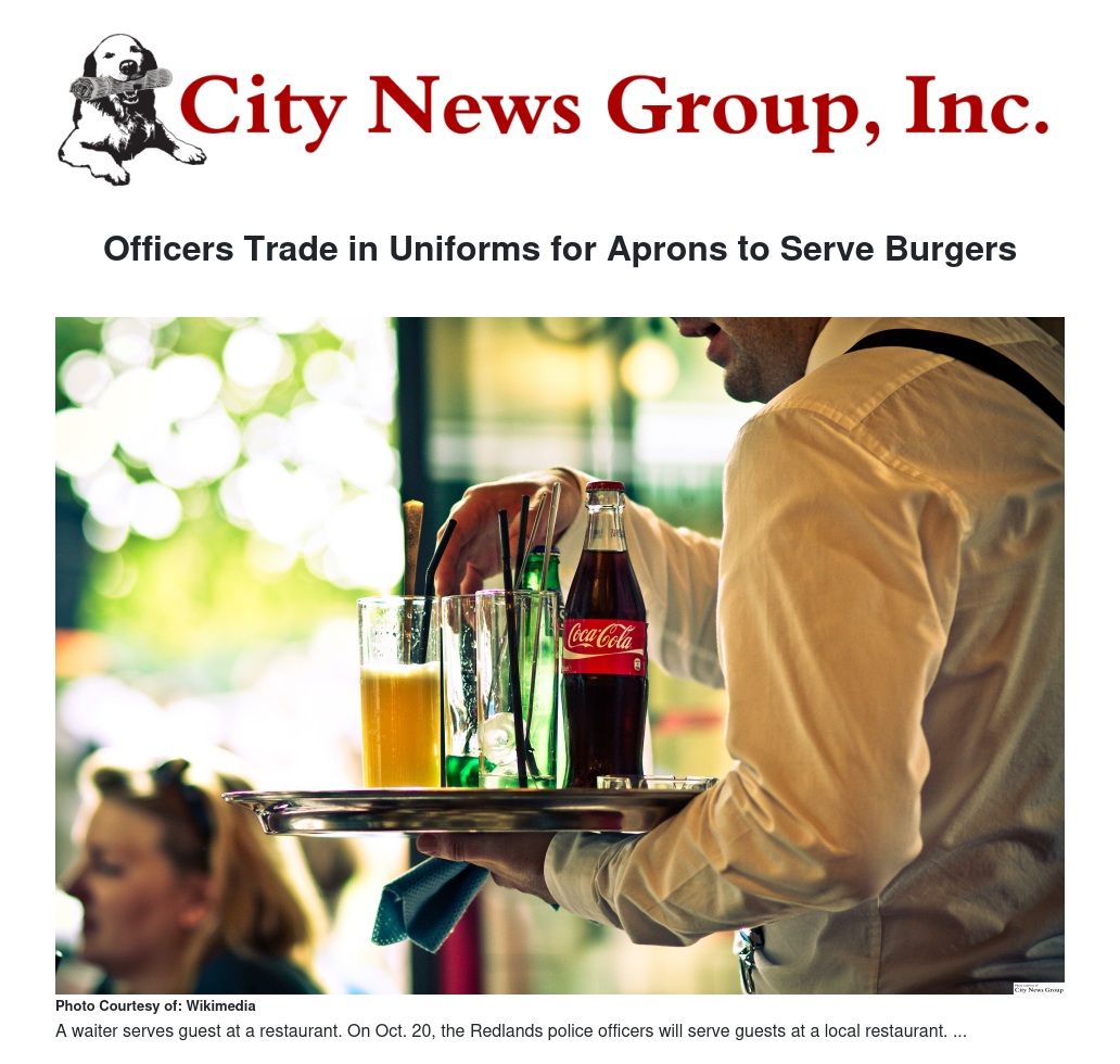 Redlands Police officers and other RPD personnel will volunteer their time as servers alongside Red Robin’s wait staff to collect tips from guests to raise funds for Special Olympics Southern California.