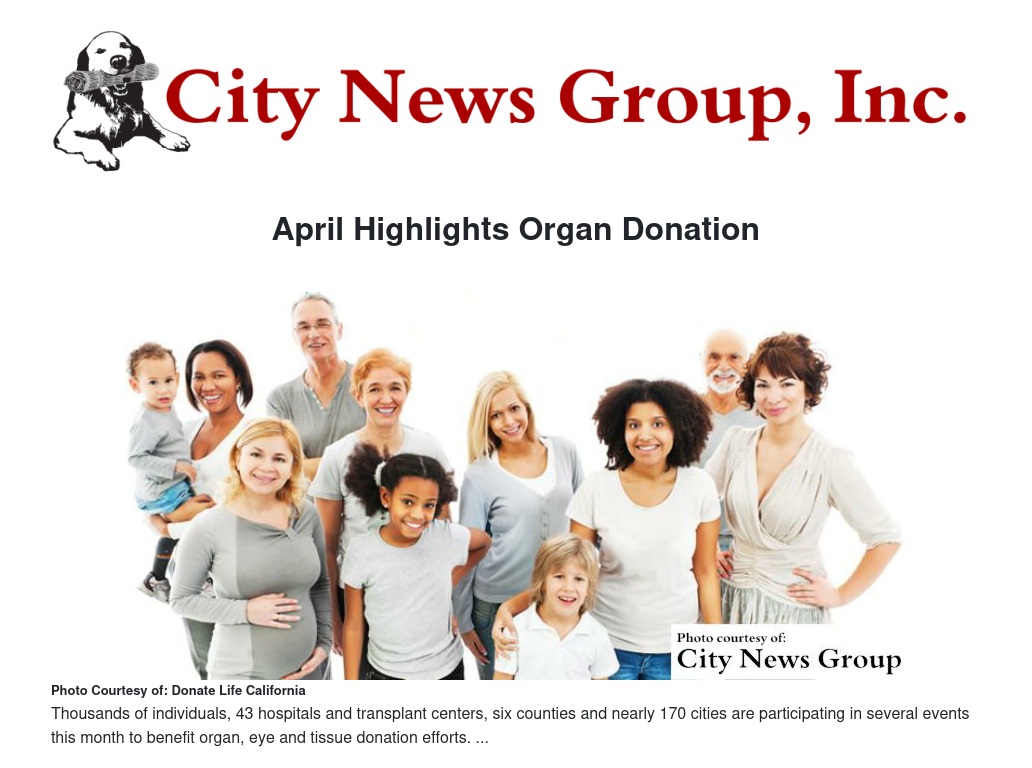 Capping the month is the 13th Annual Donate Life Run/Walk and Family Festival at Cal State Fullerton on Saturday, April 25. More than 12,000 people organized into hundreds of donor family teams, 25 hospital teams and dozens of other groups and organizations are expected to participate in the largest event of its kind in the country.