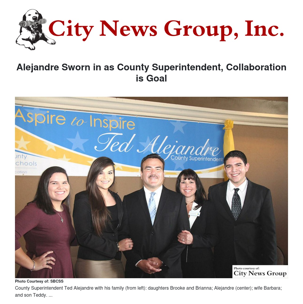 "In this new environment, I am ready and prepared to take the reigns of the county superintendent’s office," said Alejandre, a San Bernardino native who formerly served as the deputy superintendent of county schools, starting his career with the San Bernardino County Superintendent of Schools office in 2008. "I know the importance of building strong collaborative relationships with our districts and providing strong educational programs for students in our alternative, special education, juvenile court and preschool programs. Creating a culture of open communication and collective vision with parents and students, our teachers and classified staff, our community stakeholders and partners is critical to our ability of providing successful outcomes for all students from Cradle to Career."