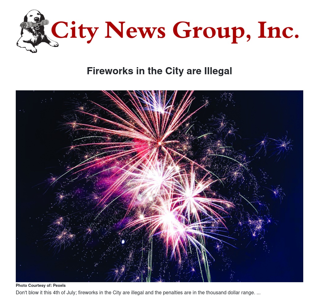 Fireworks are prohibited within the City limits, with fines of up to $1,000 per violation. In 2017, the City Council updated the City’s ordinance to hold property owners, guardians and tenants also liable for costs associated with public safety response to fireworks calls. Under state law it is also illegal for adults to supply fireworks to minors.