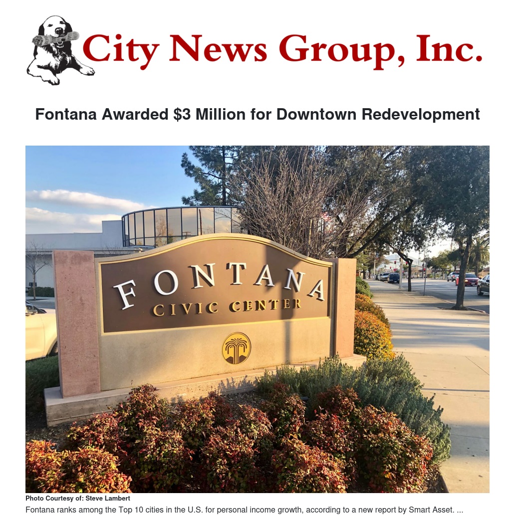Fontana Awarded $3 Million for Downtown Redevelopment by Steve Lambert - City News Group, Inc.