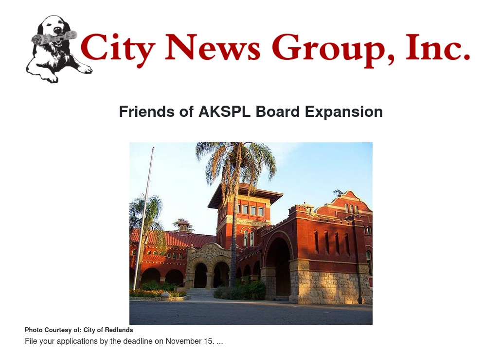 The Friends of A.K. Smiley Public Library Board of Directors are looking for people who love books, libraries and want to give back to their community through becoming a member of the board.