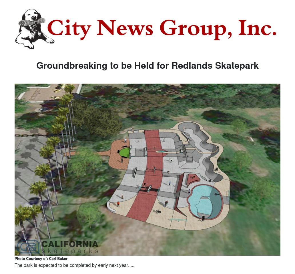 Groundbreaking to be Held for Redlands Skatepark by Carl Baker - City News Group, Inc.