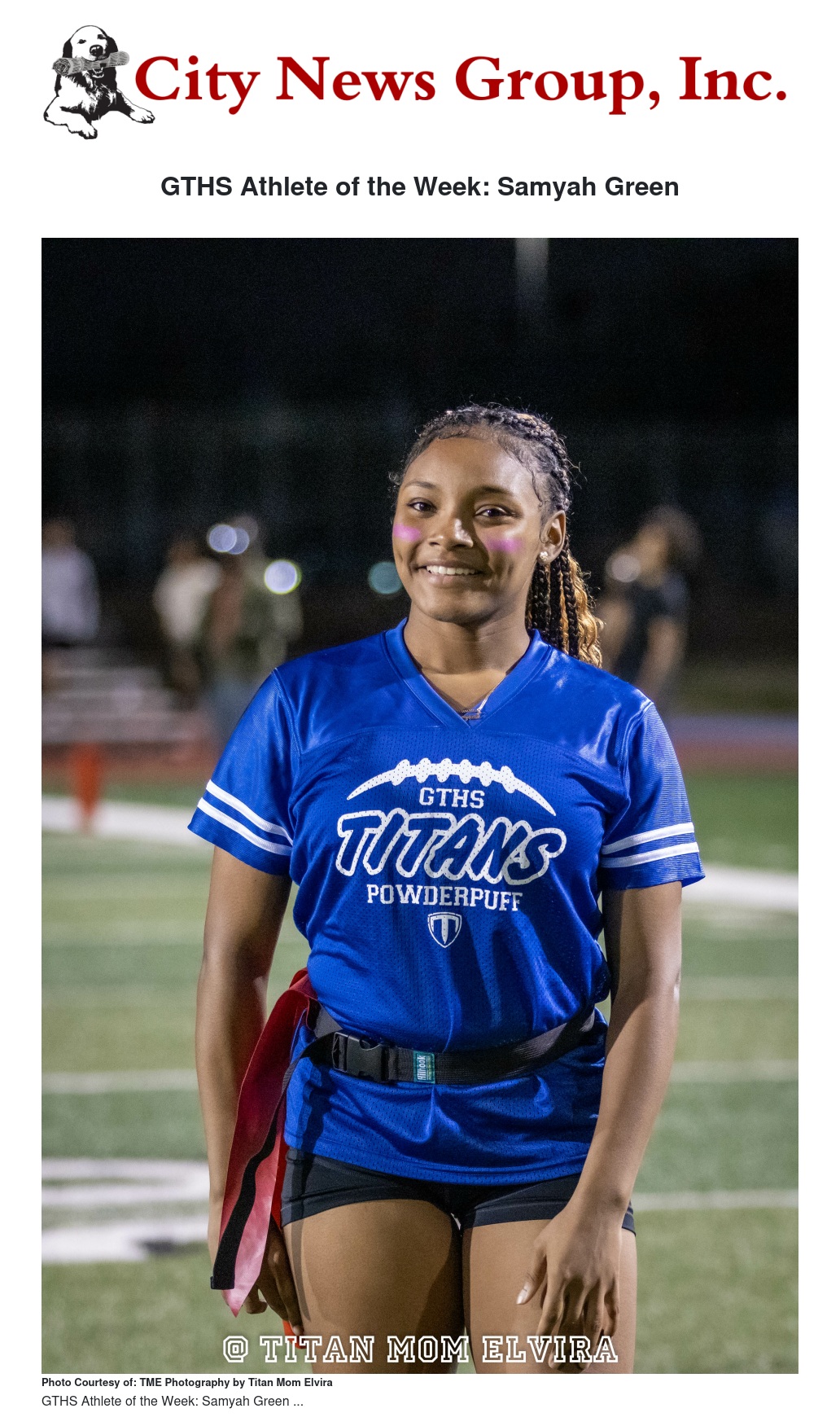 GTHS Athlete of the Week: Samyah Green by Titan Mom Elvira - City News Group, Inc.