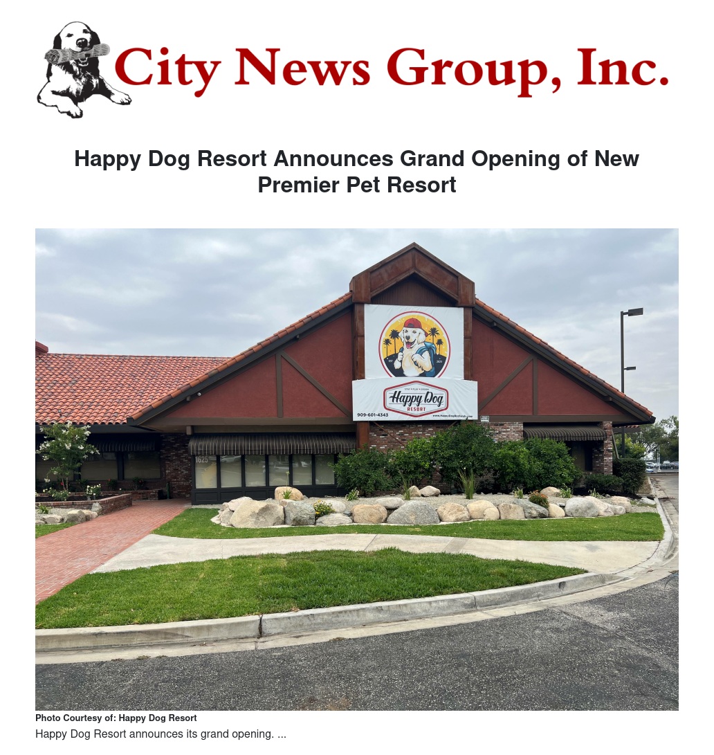 “As dog lovers ourselves, we are thrilled to be opening our doors to our pet-loving community of Redlands,” said Happy Dog Resort owners, Brent and Brittany Poole. “Our pet resort has been meticulously designed to provide pets with a safe and fun environment while giving pet parents peace of mind that their beloved companions are taken care of with the utmost love and attention.”