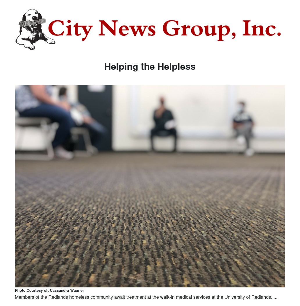 Loma Linda University and University of Redlands have partnered to offer free walk-in medical services for the homeless throughout the duration of the California order to shelter in place. The Redlands Walk-In Medical Services comes from both universities' commitment to service and advancing the health of the community.