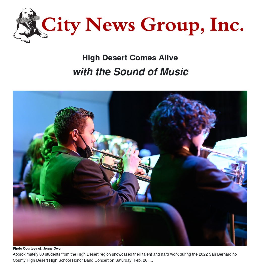 Approximately 80 students from the High Desert region showcased their talent and hard work during the 2022 San Bernardino County High Desert High School Honor Band Concert on Saturday, Feb. 26.