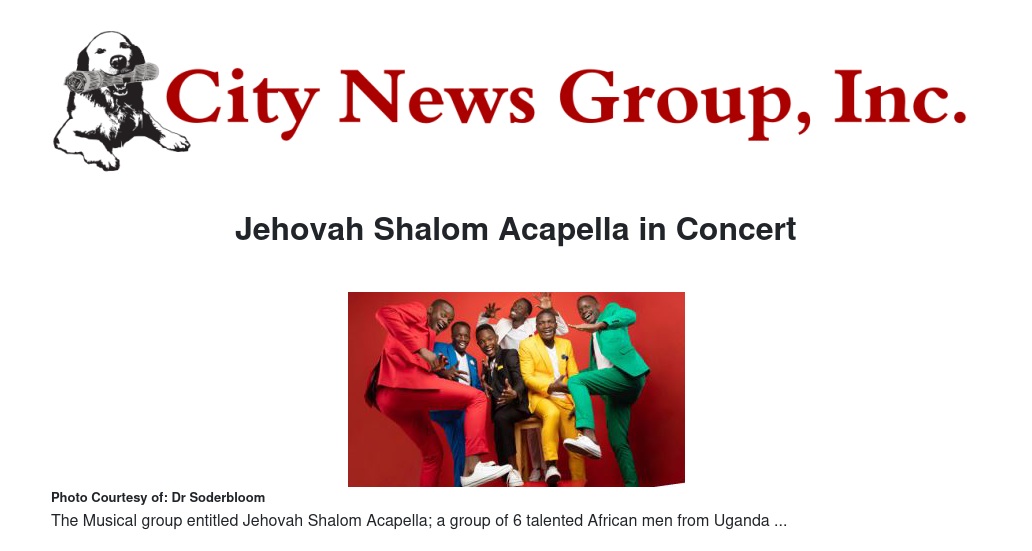 Calimesa Community Concerts is privileged to present Jehovah Shalom Acapella's “Love In Motion.” The Musical group entitled Jehovah Shalom Acapella; a group of 6 talented African men from Uganda will present a concert, entitled “Love In Motion” at the Calimesa SDA Church, 4th and Myrtlewood, Calimesa on Saturday afternoon, March 23 at 4:00 p.m.