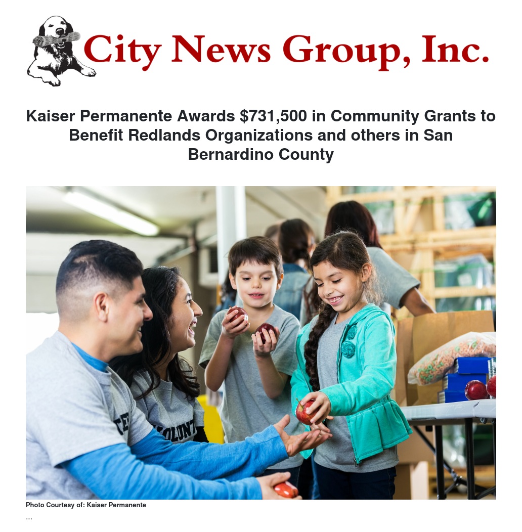 Continuing its strong commitment to supporting the communities it serves, Kaiser Permanente has announced a total of $731,500 in local community health grants for 2024 awarded to 36 organizations in San Bernardino County.