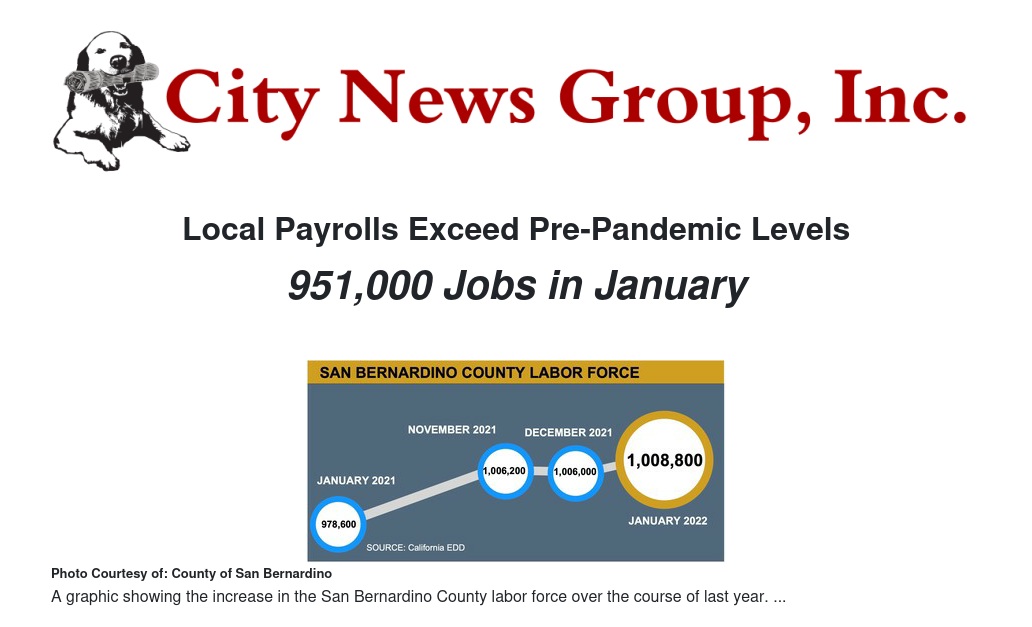 Local Payrolls Exceed Pre-Pandemic Levels by County of San Bernardino - City News Group, Inc.