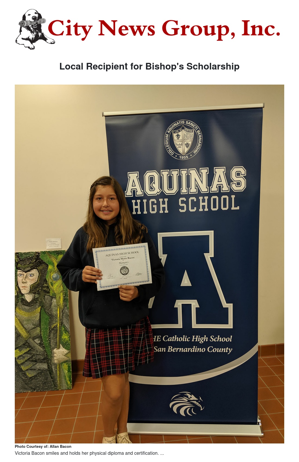 Local Recipient for Bishop's Scholarship by Allan Bacon - City News Group, Inc.