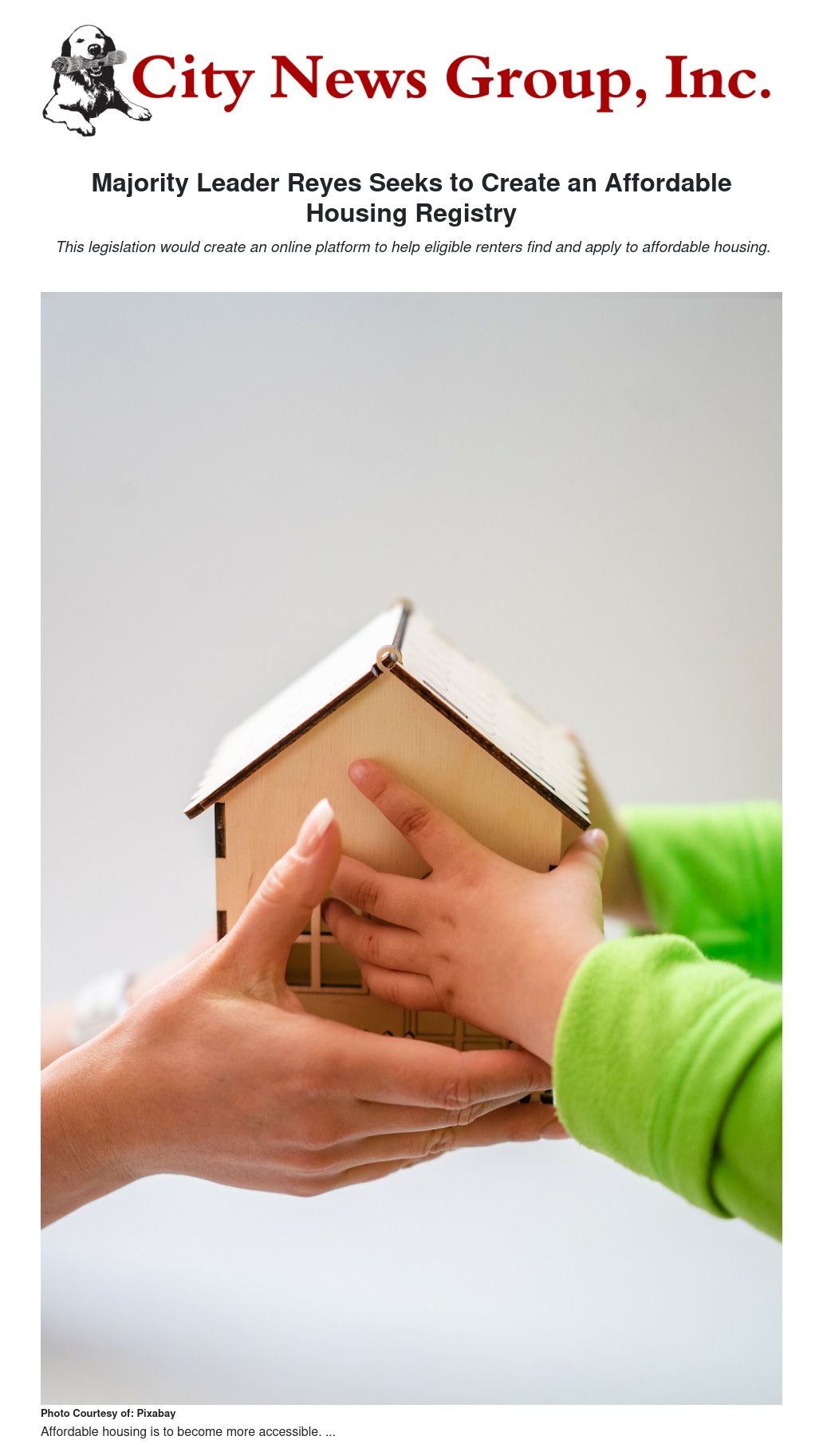 Majority Leader Reyes Seeks to Create an Affordable Housing Registry by Jenn Hardy - City News Group, Inc.