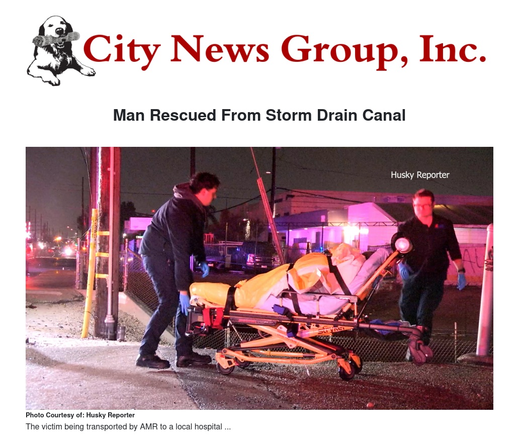 On March 5th, 2025, at about 10:48 PM, San Bernardino PD, County Fire, and AMR responded to a swift water rescue in the drainage canal near East Mill Street, just East of South Allen Street.