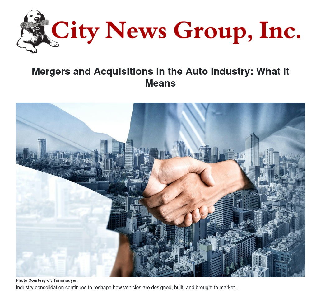 Mergers and Acquisitions in the Auto Industry: What It Means by Dana McAllister - City News Group, Inc.