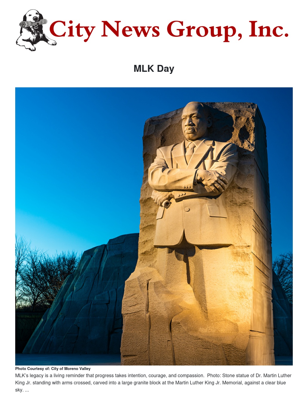 Let’s draw inspiration from Dr. King’s life and continue to strive for a Moreno Valley that reflects the best of his vision - a future where opportunity is within reach for all, differences are celebrated, and our common humanity and decency guide the way. I’m grateful to serve a community that keeps that spirit alive, not only on this day, but every day of the year.
