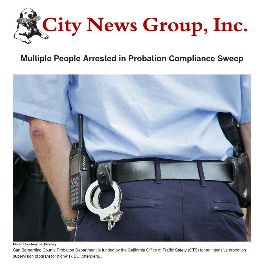 Redlands Police, in coordination with the San Bernardino County Probation Department, conducted a city-wide compliance sweep Friday, June 1, targeting both low- and high-level offenders as well as sex crime registrants.
