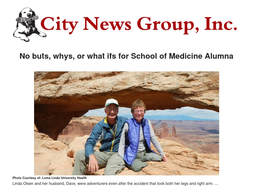 Linda says she and Dave were young, strong, and willing to work hard. The two wasted no time, scribbling lists of their daily activities, living needs, and future goals. After all, in addition to LLU alumna, wife, radiology resident, and triple amputee, Linda, whether she knew it or not, had other titles to acquire: mother, award-winning radiologist, professor, wilderness adventurer, and grandmother.