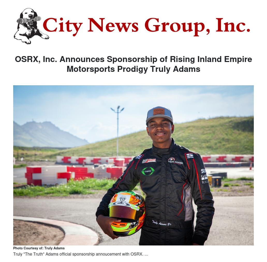 OSRX, Inc. Announces Sponsorship of Rising Inland Empire Motorsports Prodigy Truly Adams by Justus Baker-Postell - City News Group, Inc.