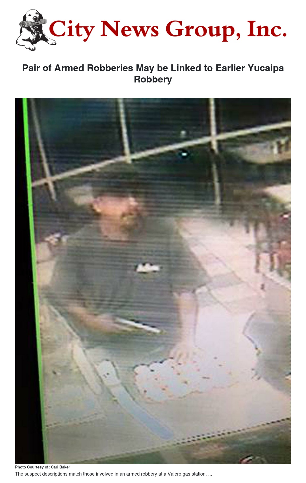 Pair of Armed Robberies May be Linked to Earlier Yucaipa Robbery by Carl Baker - City News Group, Inc.