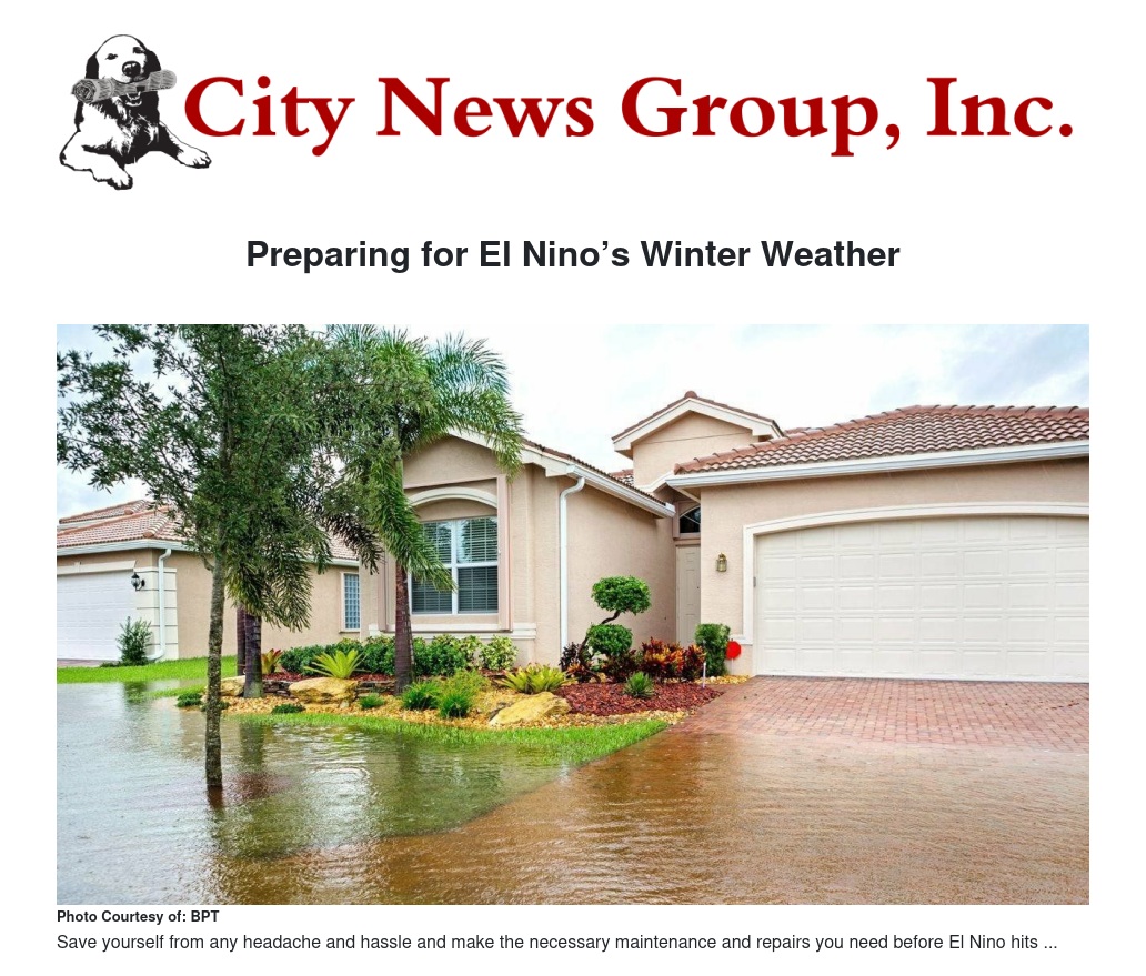 Knowing that there is a high probability for persistent rainfall this winter, homeowners should take preventative measures to protect themselves against damages that can occur. Lee suggests the following tips to help minimize water and wind damage to your home and property:
