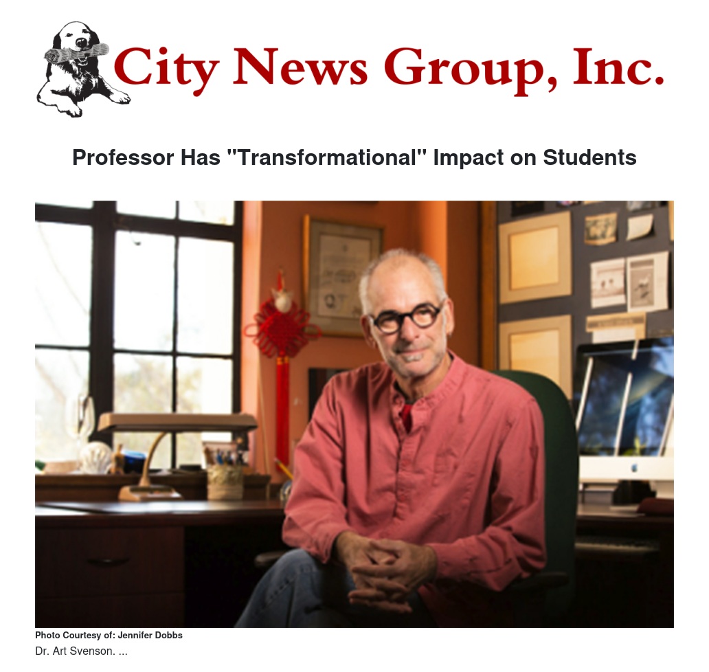 In his nomination letter, University of Redlands President Ralph Kuncl describes Svenson as a man of the greatest talent, character, and integrity. “Art does more than teach his students. He helps them become the people of character they are destined to be. And they never forget him.”