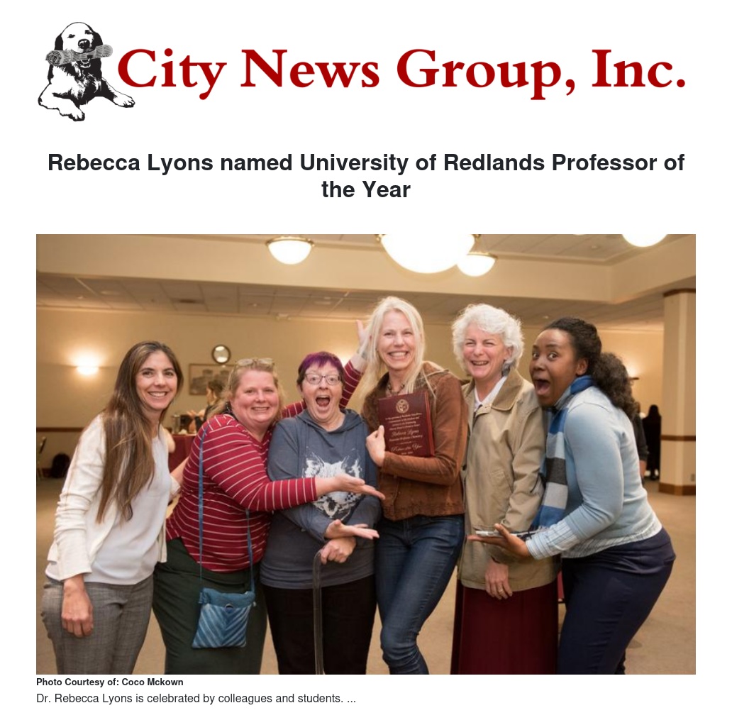 The University of Redlands Mortar Board Honor Society has named Rebecca Lyons as Professor of the Year. Lyons, a chemistry professor in the College of Arts and Sciences, has been teaching at the University of Redlands for nine years.