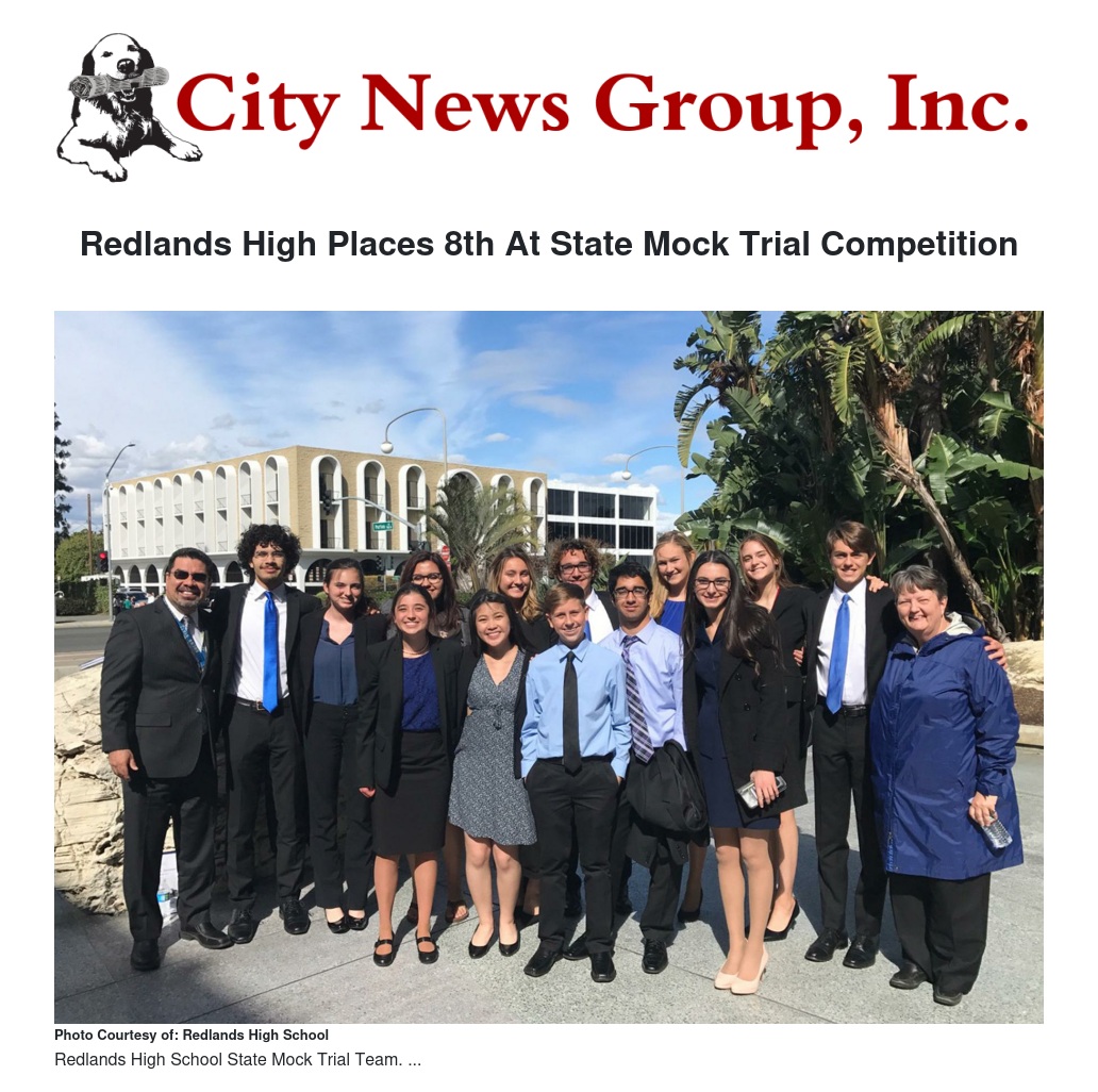 Redlands High School finished eighth at the 37th annual California Mock Trial competition that was compled on March 18.