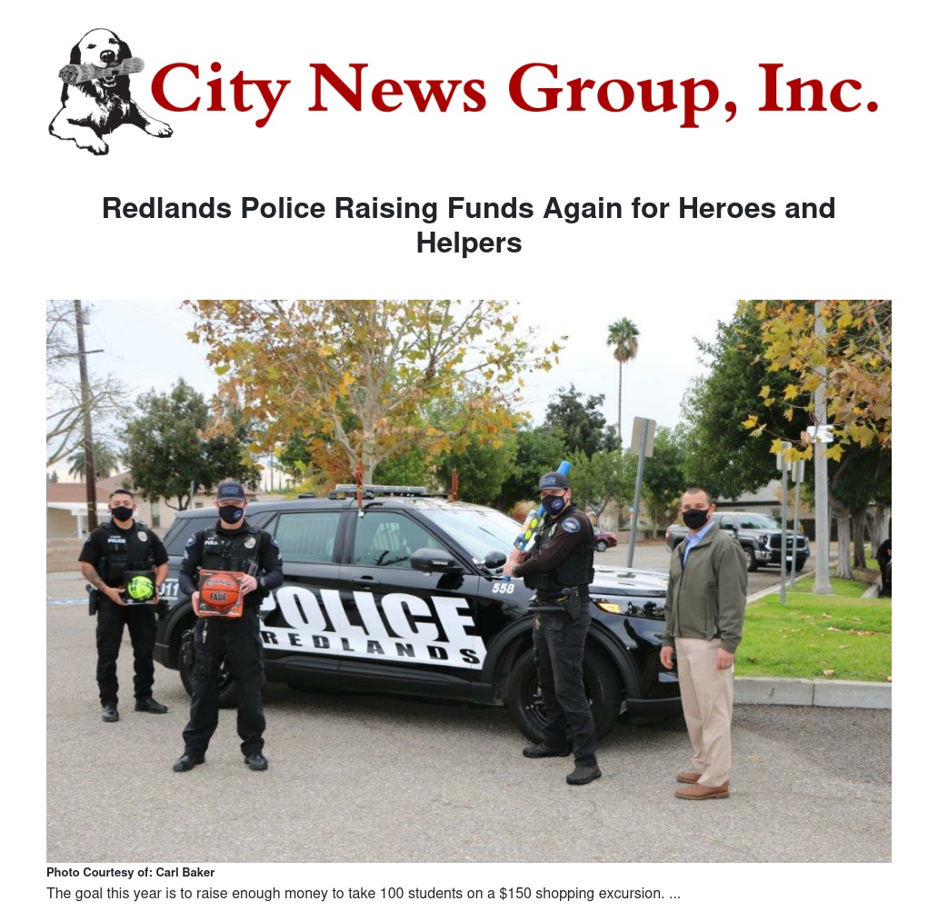 The Redlands Police Community Foundation (RPCF) is currently raising funds for the annual Heroes and Helpers to take deserving local students on a holiday shopping spree.