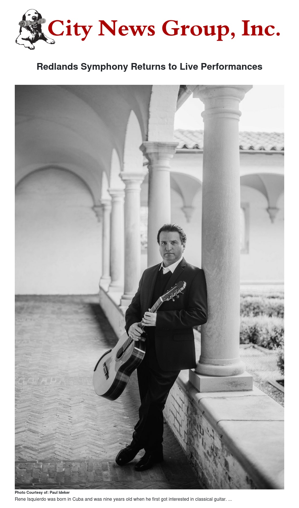 Internationally celebrated guitarist, Rene Izquierdo, will perform Joaquin Rodrigo’s Concierto de Aranjuez in his debut performance with the Redlands Symphony when the orchestra returns to live performances on Saturday, October 9, 2021 in Memorial Chapel on the campus of the University of Redlands. Doors open at 6:30 PM. The concert begins at 8 PM. Maestro Ransom Wilson will conduct.
