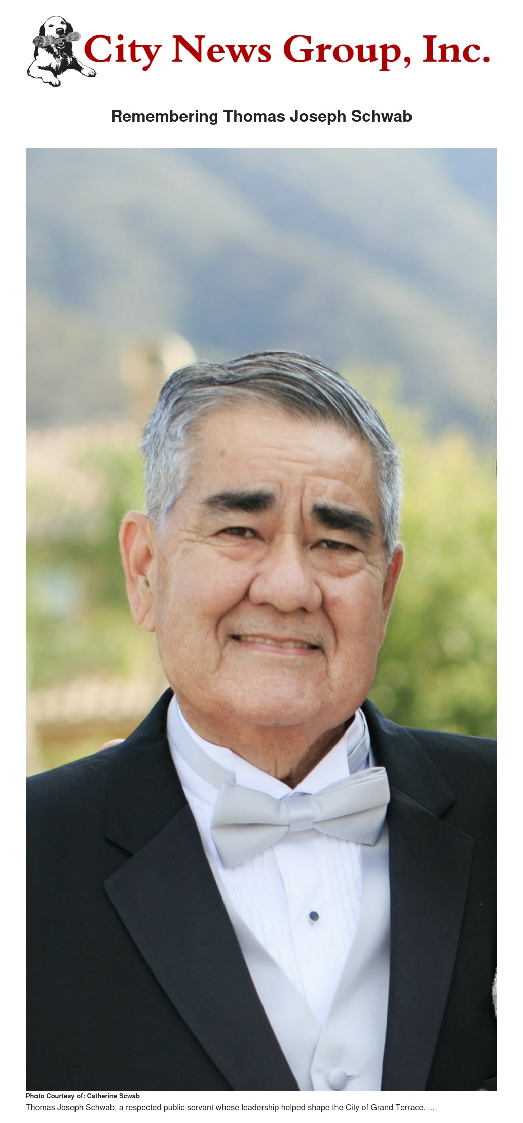 Thomas Joseph Schwab, a respected public servant whose leadership helped shape the City of Grand Terrace for more than two decades, passed away on December 13, 2025, at the age of 68.