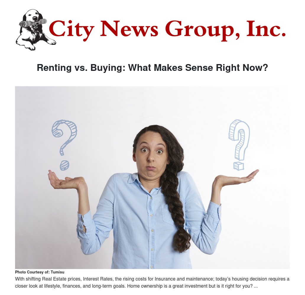 Renting vs. Buying: What Makes Sense Right Now? by Margie Miller, Your Realtor - City News Group, Inc.