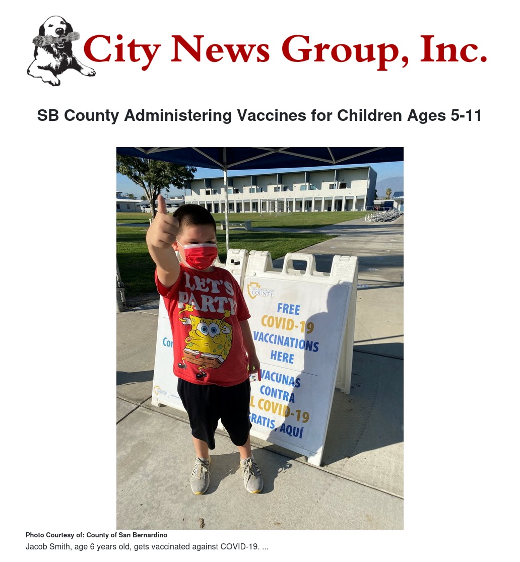 SB County Administering Vaccines for Children Ages 5-11 by County of San Bernardino - City News Group, Inc.