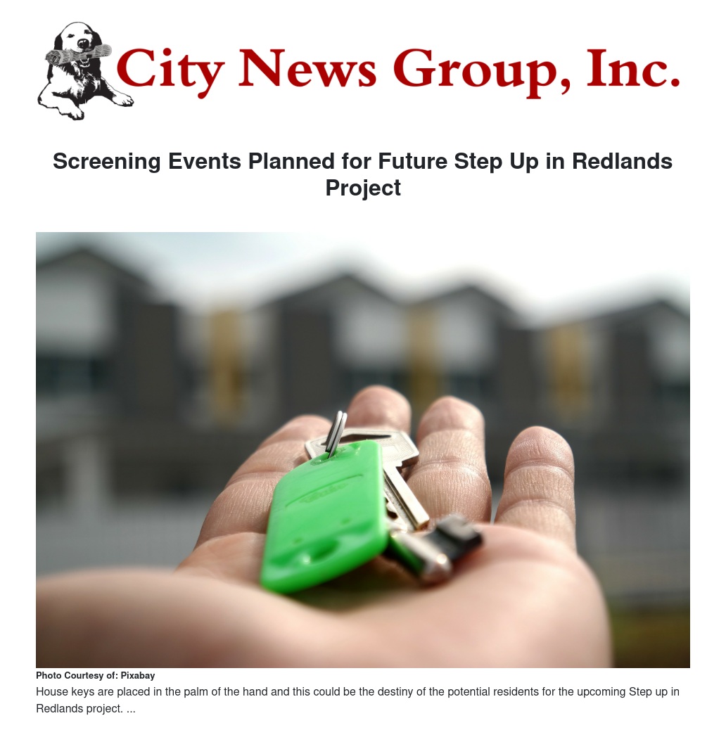 The City of Redlands, in coordination with Step Up on Second and Family Service Association of Redlands, will host two screening events for potential future residents of the Step Up in Redlands project (formerly Good Nite Inn).