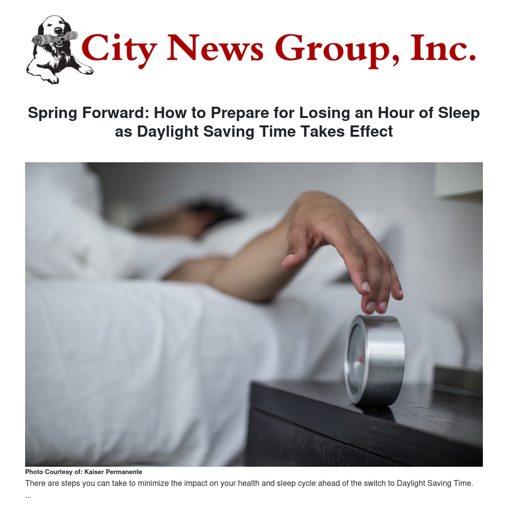 Spring Forward: How to Prepare for Losing an Hour of Sleep as Daylight Saving Time Takes Effect by Terry Kanakri - City News Group, Inc.