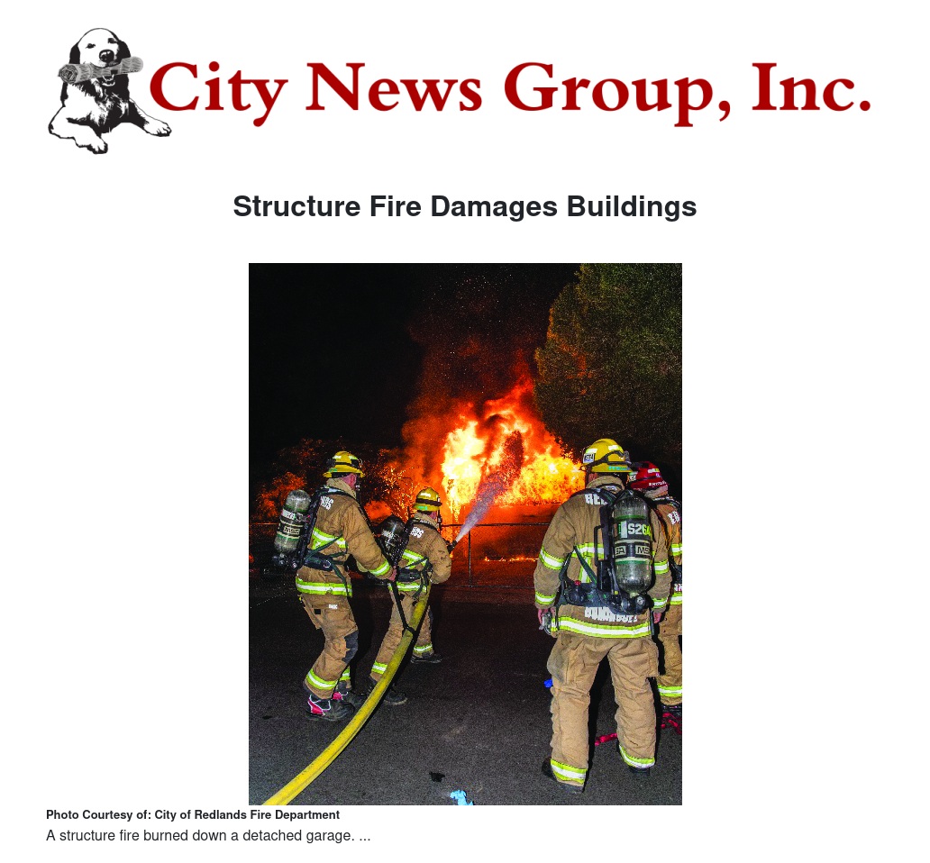 Redlands Firefighters, along with an engine company from Loma Linda, responded to a structure fire in the 10800 block of New Jersey Street at approximately 9:15 p.m. Wednesday, Nov. 13. There were no injuries reported.