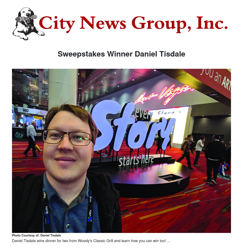 Sweepstakes Winner Daniel Tisdale by City News Group - City News Group, Inc.