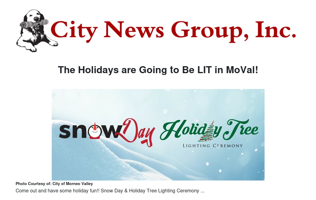 The holidays are right around the corner, and that means it's almost time for our Snow Day and Holiday Tree Lighting Ceremony.
