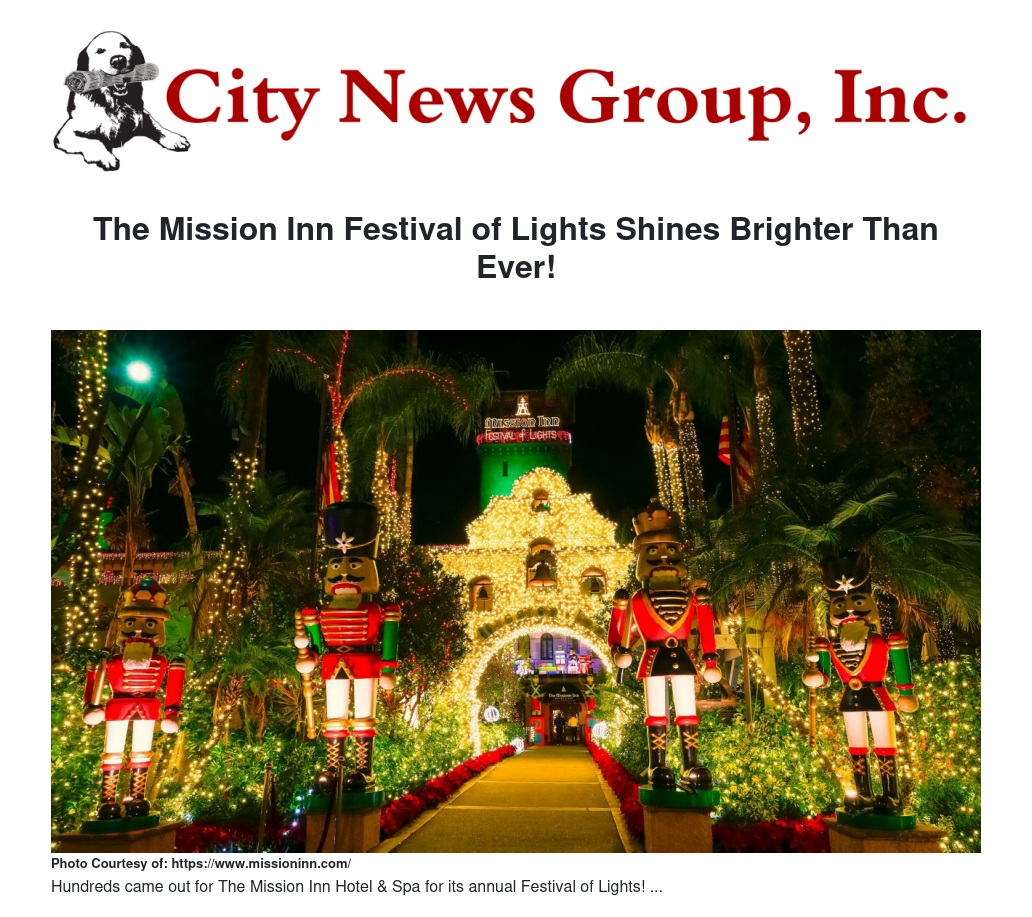 The Mission Inn Festival of Lights Shines Brighter Than Ever! by Stella Pierce - City News Group, Inc.