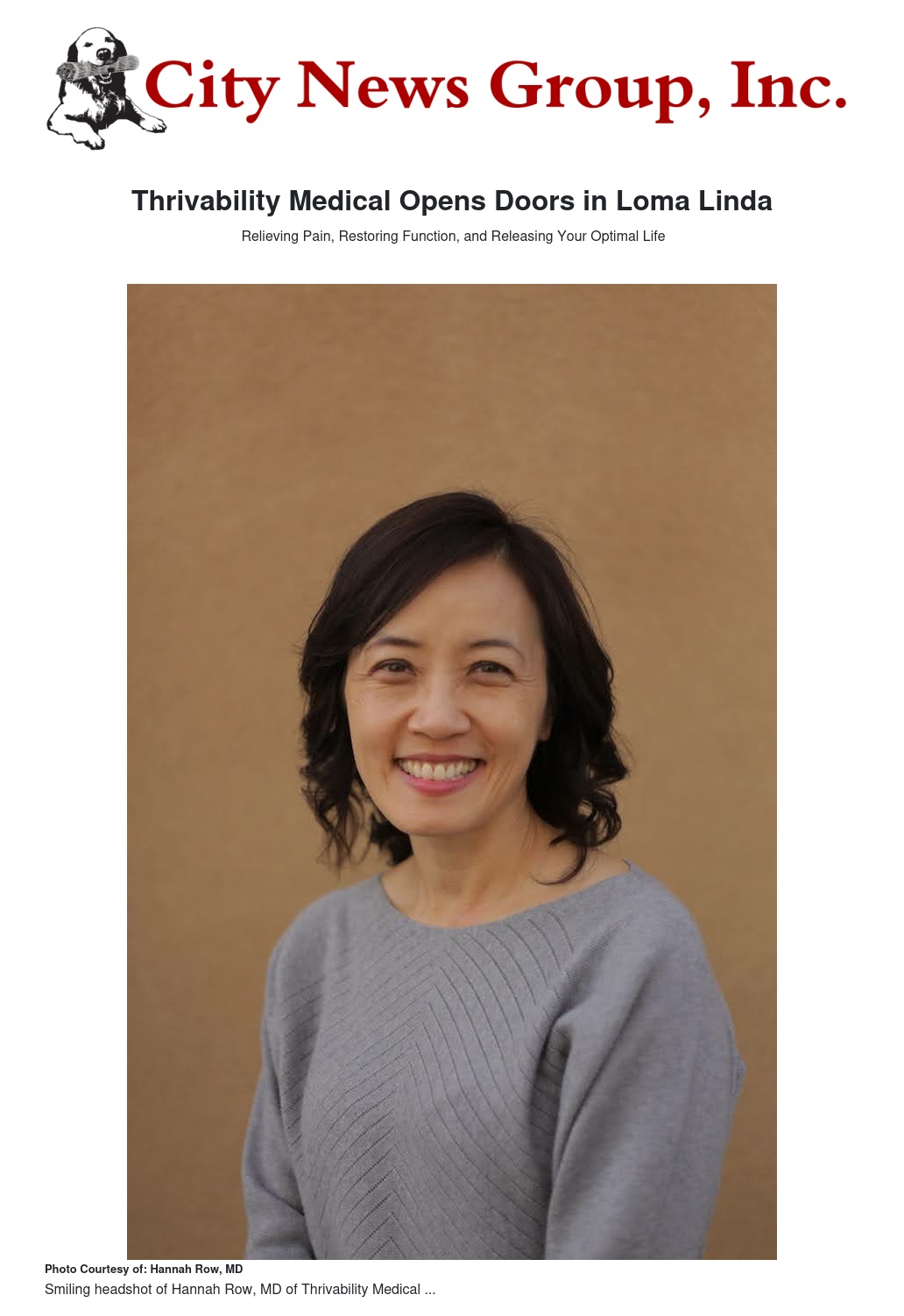 from her myofascial patients ultimately inspired her to create Thrivability Medical. For more information, call or text 909-343-4195 or visit www.thrivabilitymedical.com.