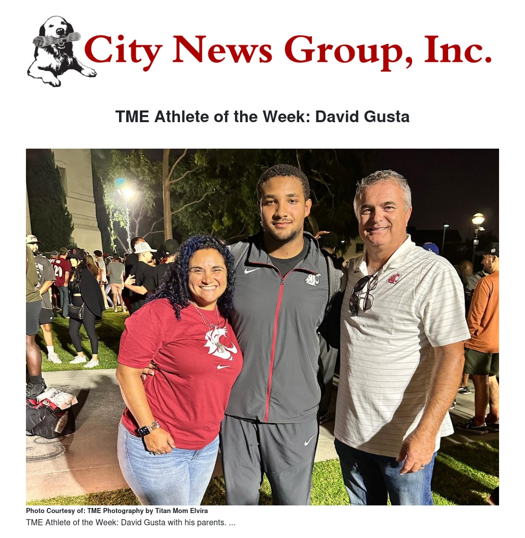 TME Athlete of the Week: David Gusta by Titan Mom Elvira & Cisco Valenzuela - City News Group, Inc.