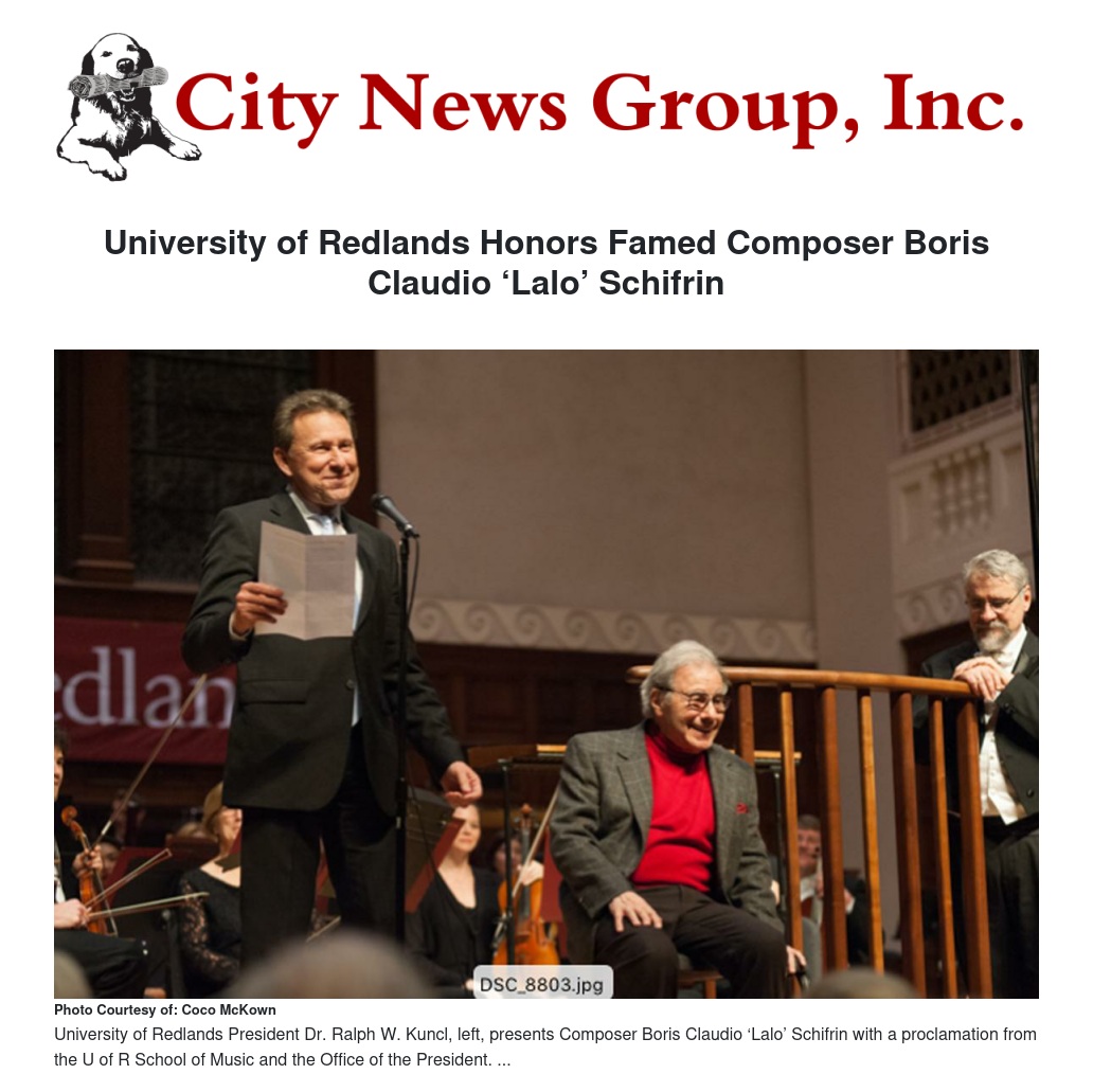 University of Redlands Honors Famed Composer Boris Claudio ‘Lalo’ Schifrin by Jennifer Dobbs - City News Group, Inc.
