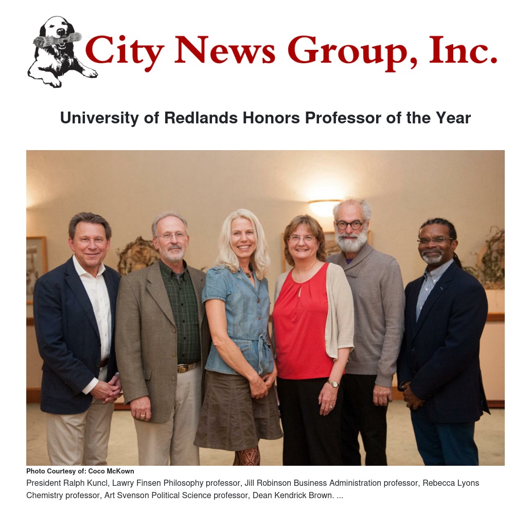 University of Redlands Honors Professor of the Year by Jennifer Dobbs - City News Group, Inc.