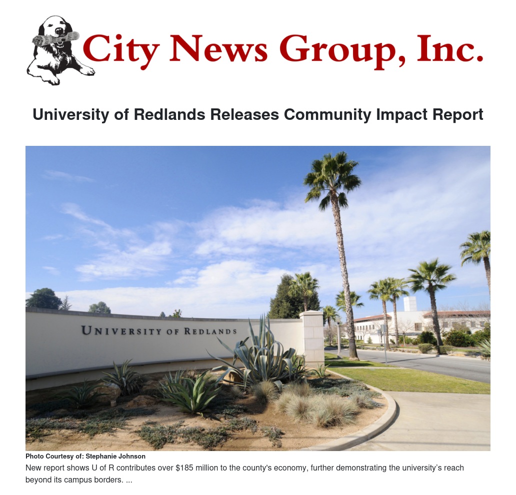 The University of Redlands recently released its community impact report, highlighting the significant social and economic impact it delivers to the regional and local economies.